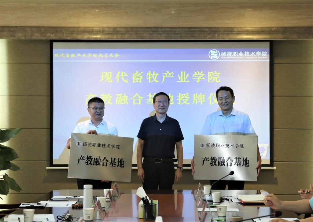 7月15日下午,杨凌职业技术学院“现代畜牧产业学院”成立暨揭牌大会在我院醒钟楼208会议室举行。学院党委书记陈宁、党委副书记任得元、副院长张迪、祝战斌,陕西省畜牧业协会常务副会长、秘书长郭庆宏、猪业分会会长、秘书长张周,陕西石羊农业科技股份有限公司总经理乔冰涛、人力资源总经理常立宏,现代牧业(集团)股份有限公司人力资源总监黎骏驹,现代牧业(宝鸡)有限公司总经理李骁勇等出席了大会。大会由副院长祝战斌主持。