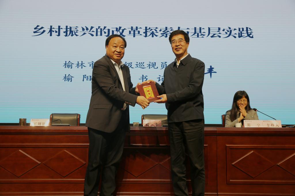 4月19日下午,学校举行乡村振兴专题报告,邀请榆林市委一级巡视员、榆阳区委书记苗丰为广大师生作“乡村振兴的改革探索与基层实践”主题报告,并聘请苗丰为学校客座教授。校党委书记陈宁主持报告会,校长王周锁为苗丰颁发客座教授聘书。