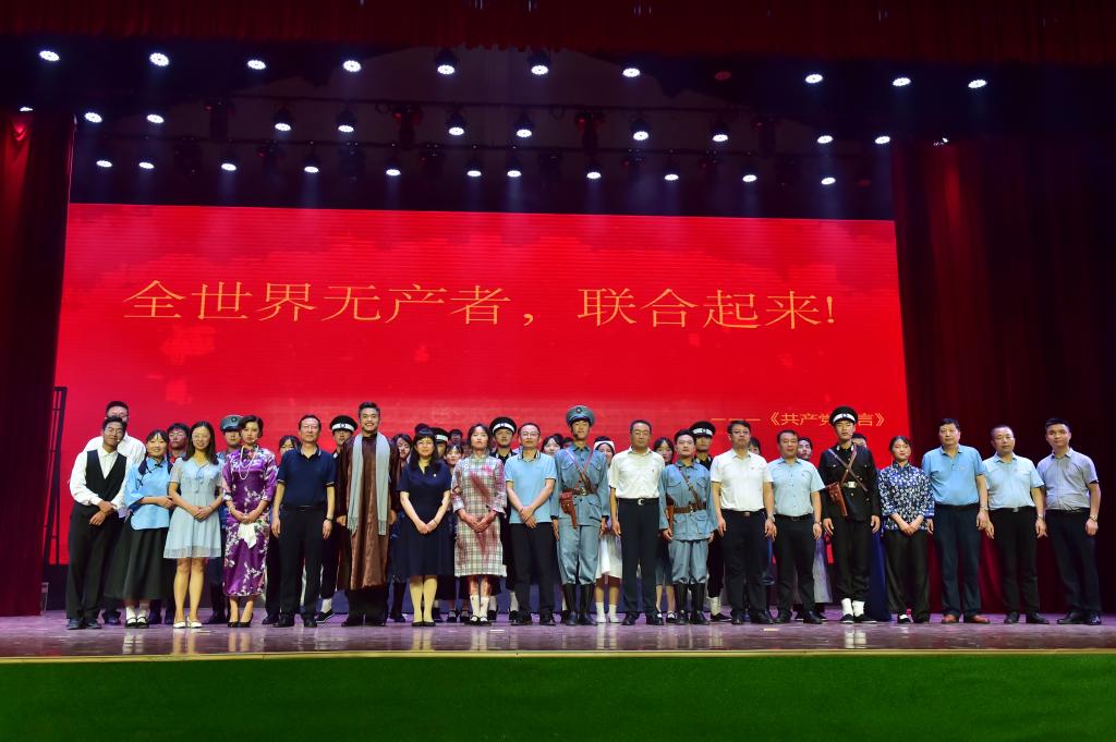 7月1日晚,中国共产党百年华诞这个特别的日子,省委宣传部、省委教育工委、团省委部署,学工部、团委组织,大学生艺术团20余名学生排演的话剧《共产党宣言》在大学生活动中心举行了校园首演。