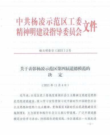 11月5日,杨凌示范区文明办公布了第四届道德模范名单,共有25人获示范区第四届道德模范称号。