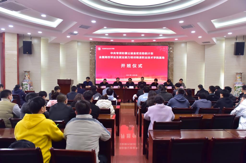 12月3日,中央专项彩票公益金宏志助航计划“全国高校毕业生就业能力培训基地”授牌暨2021年培训班开班仪式在南校区举行。陕西省教育厅学生处副处长白炀、西北农林科技大学就业中心副主任陈长友、杨凌示范区人才交流服务中心副主任朱红维,校长王周锁、校党委副书记任得元及各学院党总支书记,相关部门负责人、师生代表共70余人参加仪式。仪式由党委副书记任得元主持。