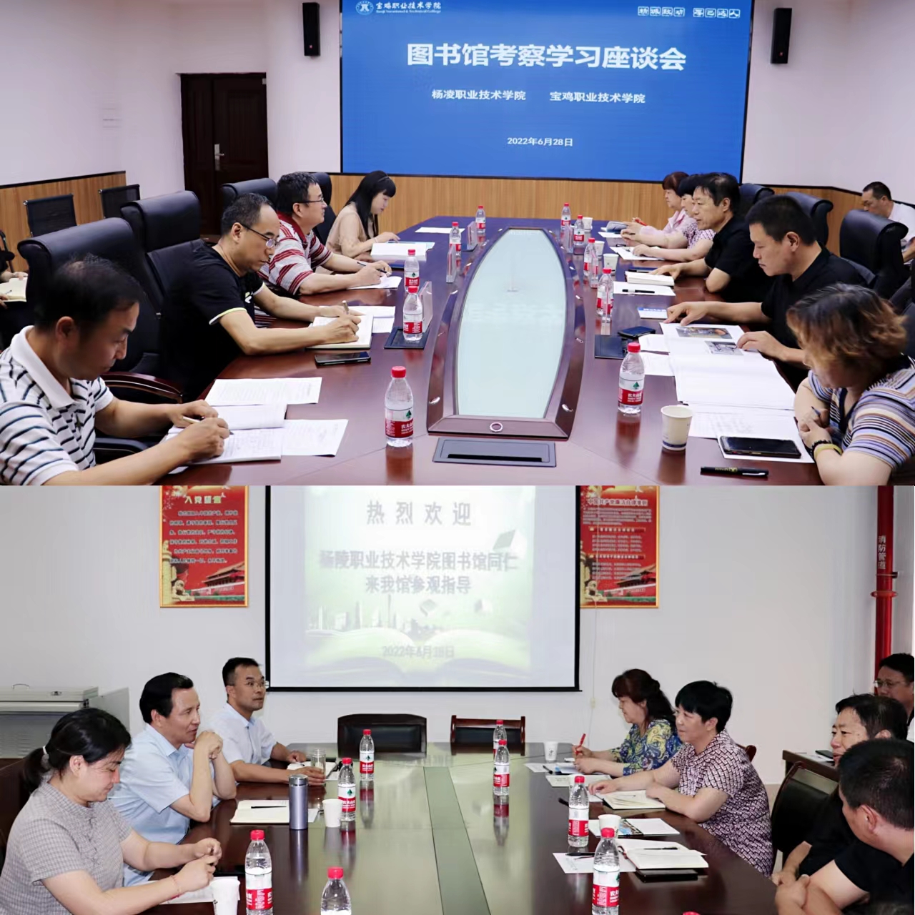 6月28日,考察组一行先后来到宝鸡职业技术学院和宝鸡文理学院。宝鸡职业技术学院校长张永良、图书馆馆长王路,宝鸡文理学院图书馆党总支书记、馆长刘崇学接待了考察组一行并座谈交流。会上,双方分享了各自图书馆的发展沿革、读者服务、制度建设、阅读推广等方面情况,并就新馆建设、纸质图书购置、数字资源建设等问题进行了深入探讨。