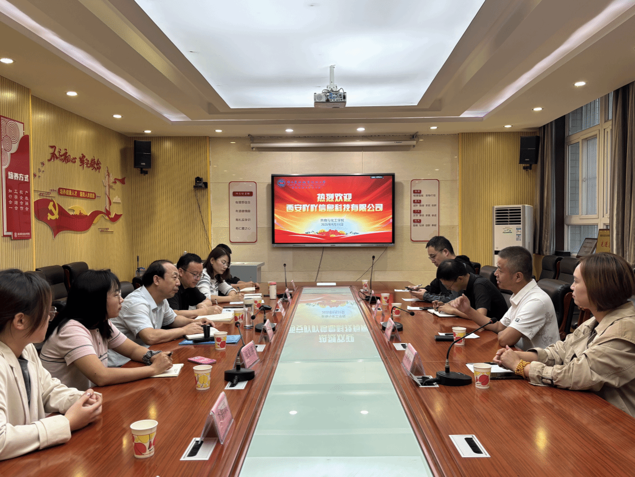 9月11日上午,西安吖吖信息科技有限公司董事长王红军一行来校开展校企合作交流活动。药物与化工学院负责人及教师代表等参加座谈。