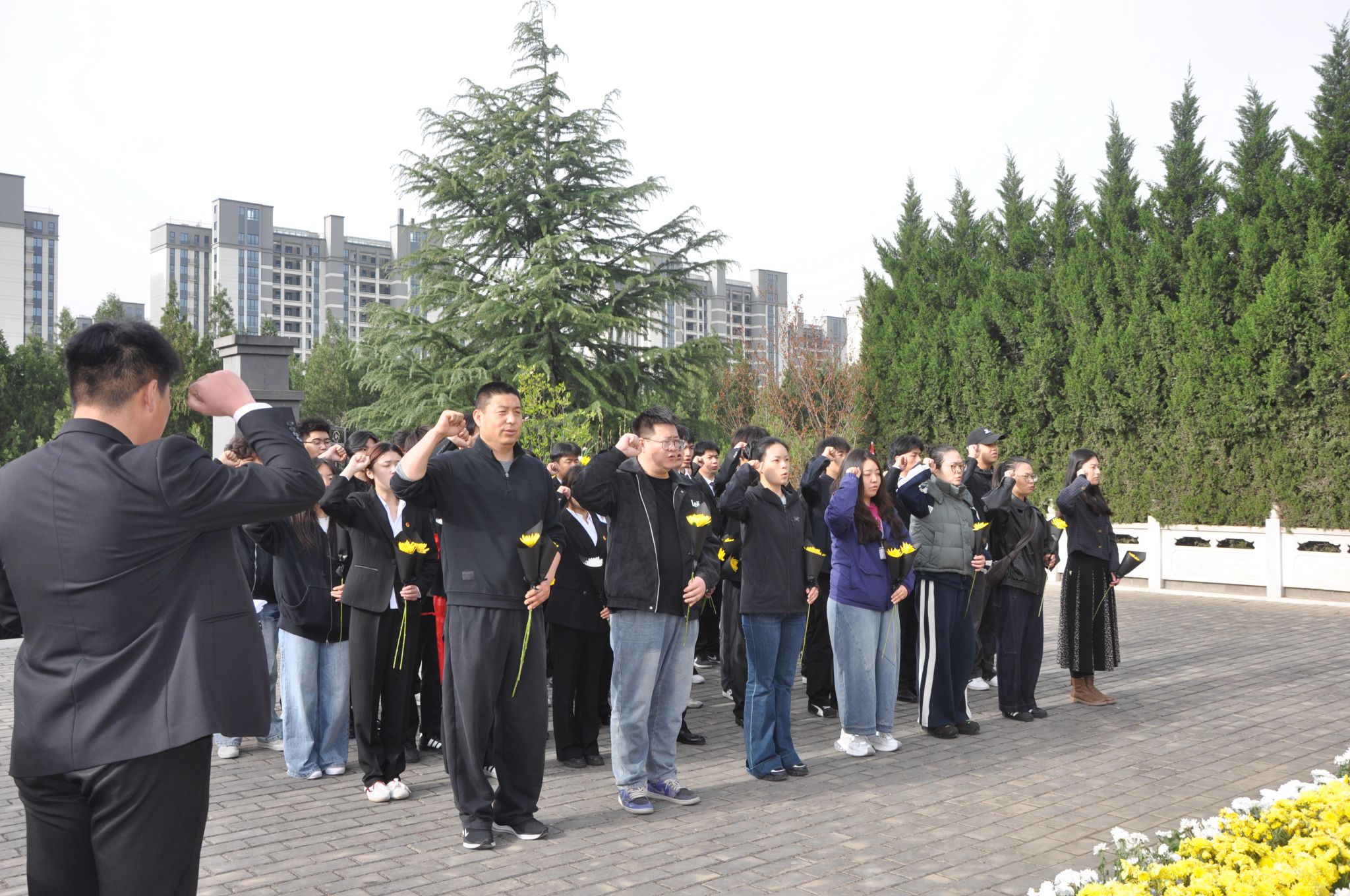 在默哀致敬环节,全体人员低头默哀,无声追思,每一份哀思都凝聚着青年学子对先烈的敬仰与感恩。随后,学生干部代表郭俊涛带领全体同学重温入团誓词,铿锵有力的誓词回荡在陵园上空,彰显着新时代青年坚定的理想信念与责任担当。一句誓言,一份责任,同学们以青春之名立誓,承诺将以先烈为榜样,不忘初心,砥砺前行。