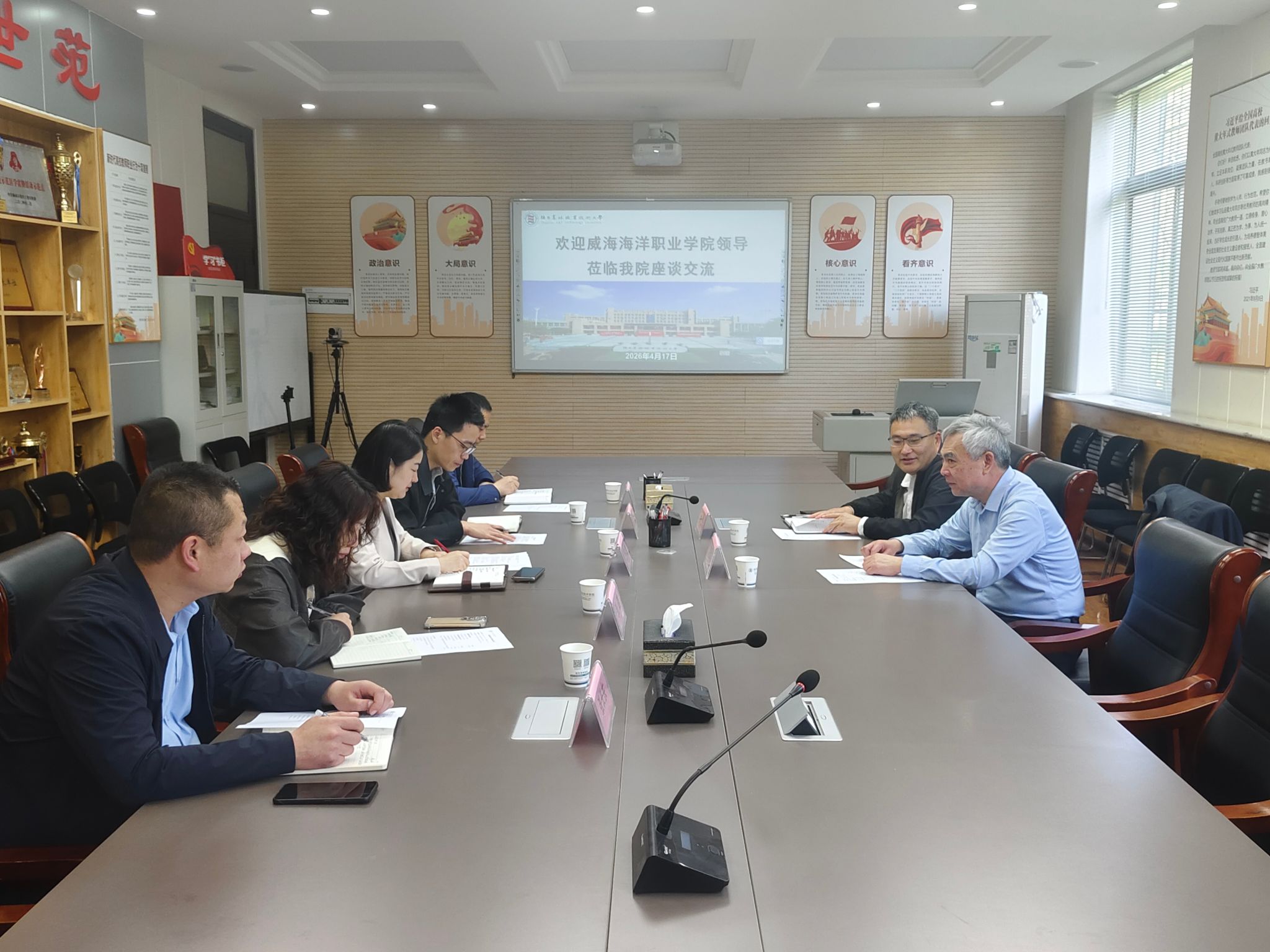 4月17日上午,威海海洋职业学院学术委员会主任、教授刘振华,海洋生物系主任、教授侯仕营一行来校考察交流。西安海棠职业学院学生处副处长、现代技术系副主任张长东,我校动物工程学院院长助理、教师代表等参加座谈。
