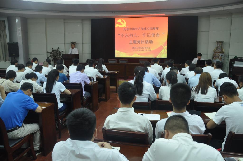 6月28日下午,建筑工程分院党总支在水韵楼二楼报告厅开展了纪念中国共产党成立98周年“不忘初心,牢记使命”主题党日活动。分院全体师生党员、教职工、入党积极分子代表、学生干部代表及学生代表100余人参加了党日活动。