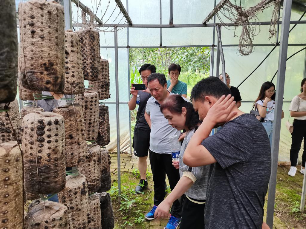 活动中,大家还参观了我院援建的食用菌产学研一体化示范基地,了解基地食用菌种植、产出、收入等情况。