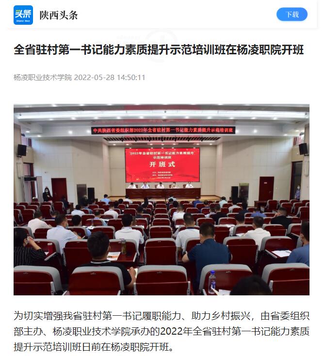 【陕西头条】全省驻村第一书记能力素质提升示范培训班在杨凌职院开班
