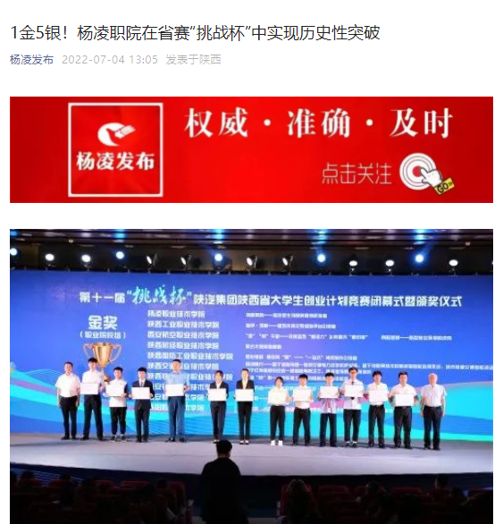 【杨凌发布】1金5银!杨凌职院在省赛“挑战杯”中实现历史性突破