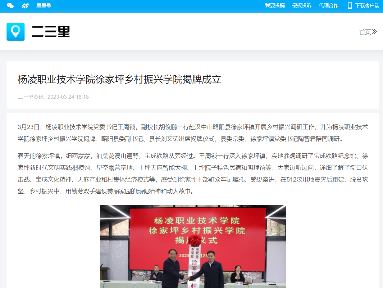 【二三里】杨凌职业技术学院徐家坪乡村振兴学院揭牌成立