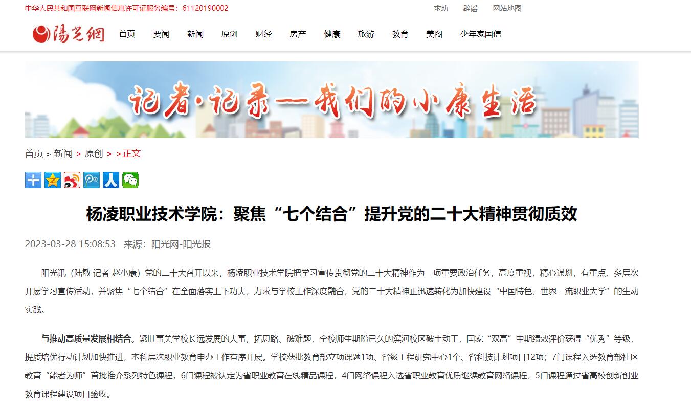 【阳光网】杨凌职业技术学院:聚焦“七个结合”提升党的二十大精神贯彻质效