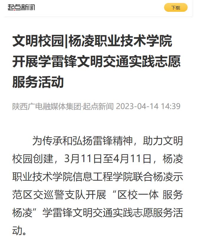 【起点新闻】文明校园|杨凌职业技术学院开展学雷锋文明交通实践志愿服务活动