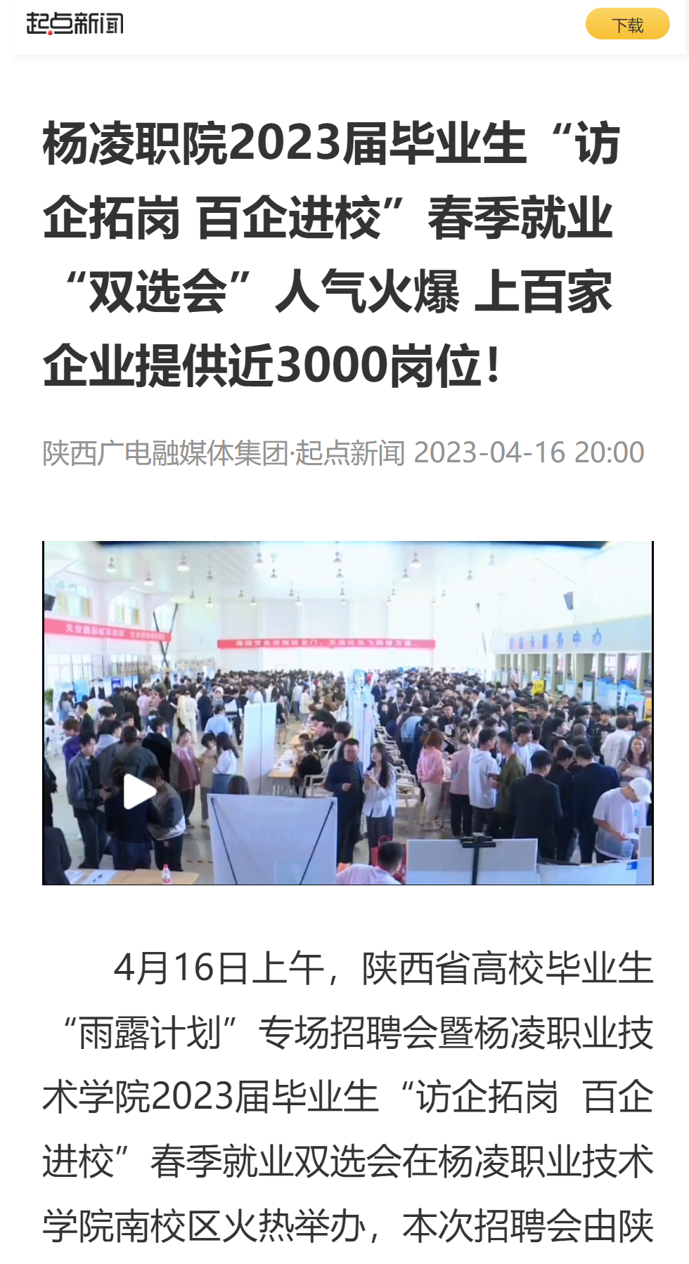 【起点新闻】杨凌职院2023届毕业生“访企拓岗 百企进校”春季就业“双选会”人气火爆 上百家企业提供近3000岗位!
