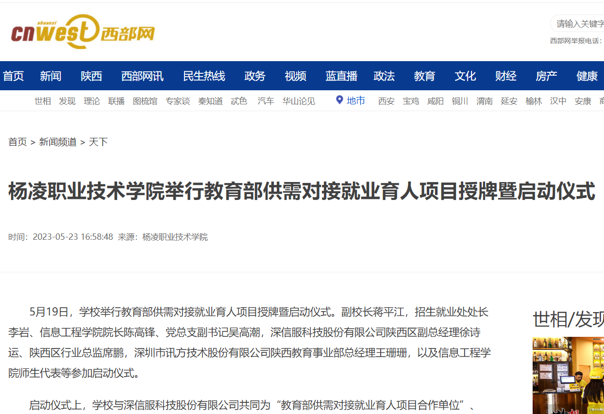 【西部网】杨凌职业技术学院举行教育部供需对接就业育人项目授牌暨启动仪式