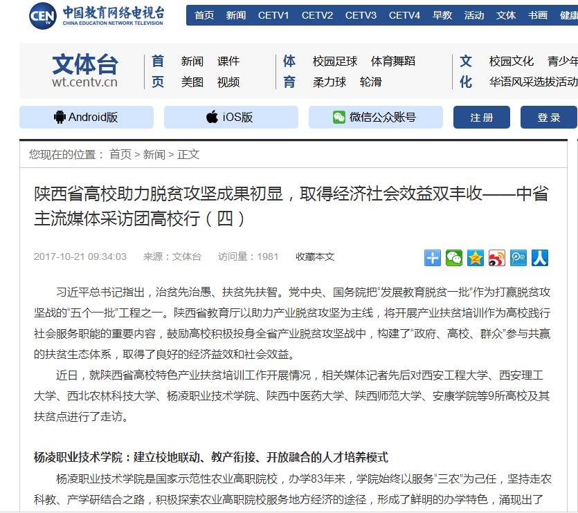 【中国教育网络电视台】中省主流媒体扶贫工作采访团走进杨凌职业技术学院