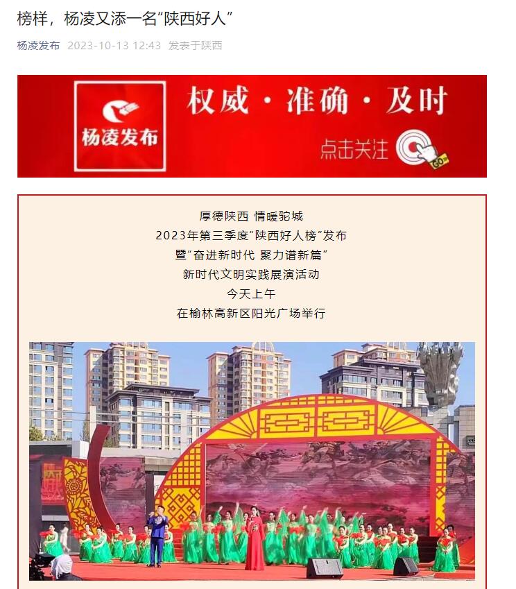 【杨凌发布】榜样,杨凌又添一名“陕西好人”