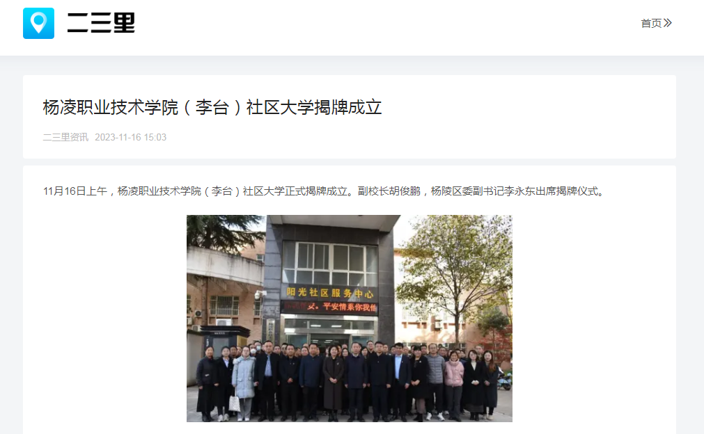 【二三里】杨凌职业技术学院(李台)社区大学揭牌成立