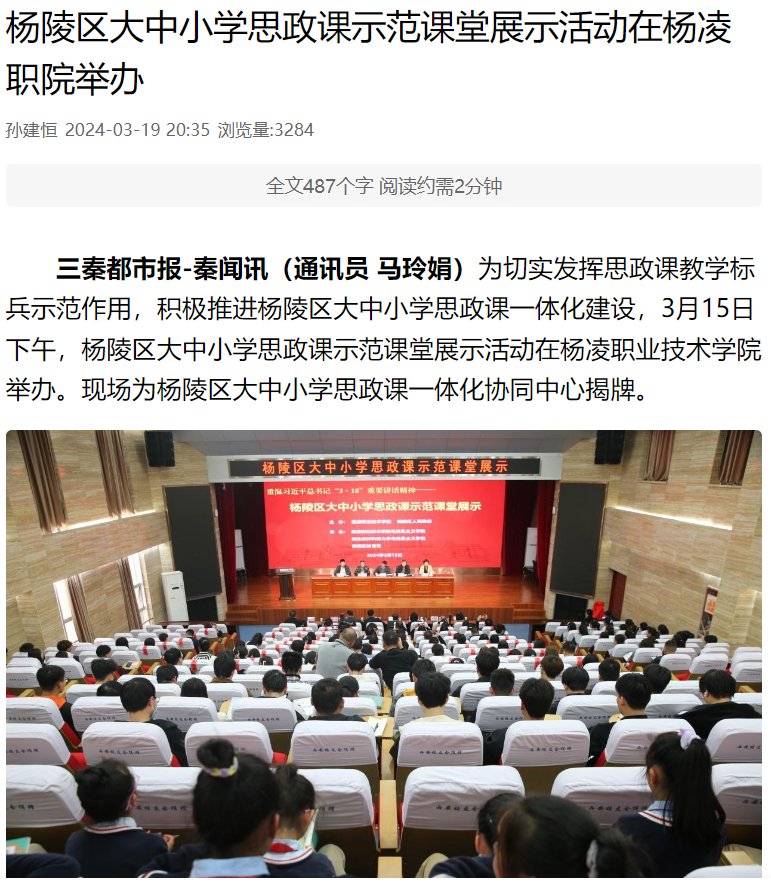 【三秦都市报】杨陵区大中小学思政课示范课堂展示活动在杨凌职院举办