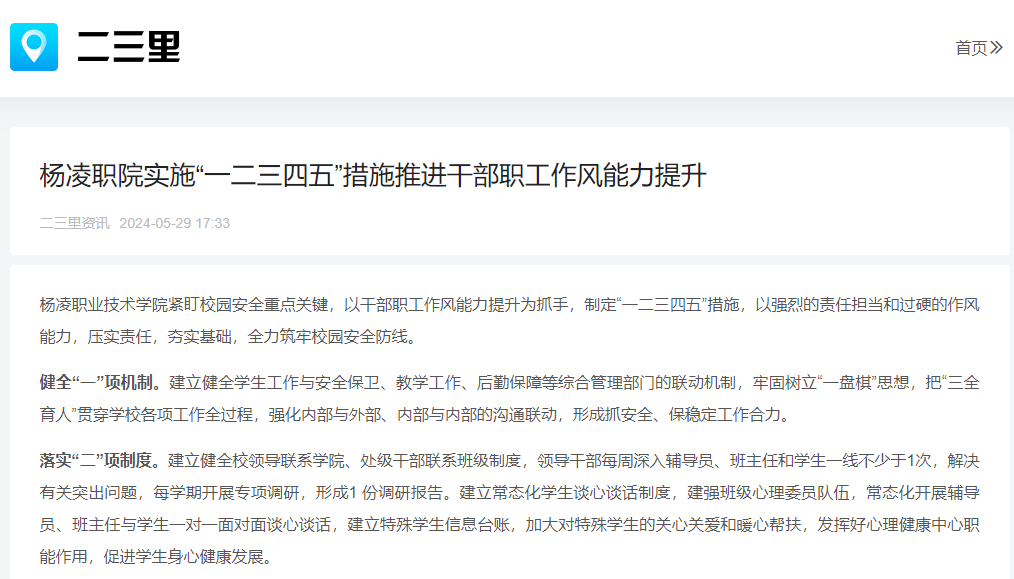 【二三里】杨凌职院实施“一二三四五”措施推进干部职工作风能力提升