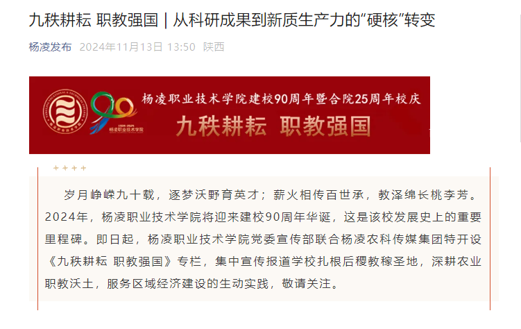 作为全国唯一农林水牧专业齐全的职业院校,杨凌职业技术学院创新体制机制,激发内生活力,充分调动科教人员科技研发和成果转化的主动性、积极性,实现更多科研成果向新质生产力的“硬核”转变。