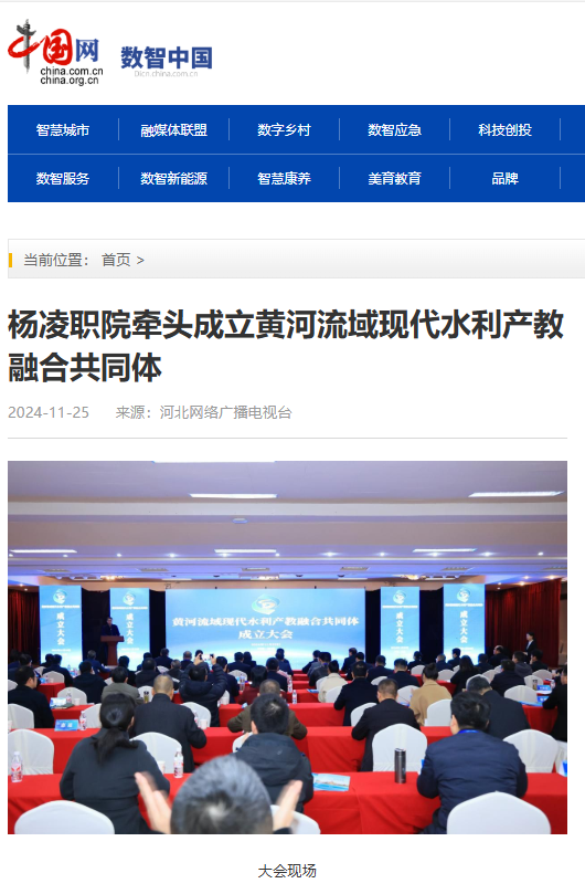 11月22日,杨凌职院与中国水电建设集团十五工程局有限公司、西北农林科技大学作为牵头单位,联合黄河流域10余个省市上下游企业、院校、行业组织和科研机构等40余家单位共同组建成立黄河流域现代水利产教融合共同体。成立大会在杨凌举行。