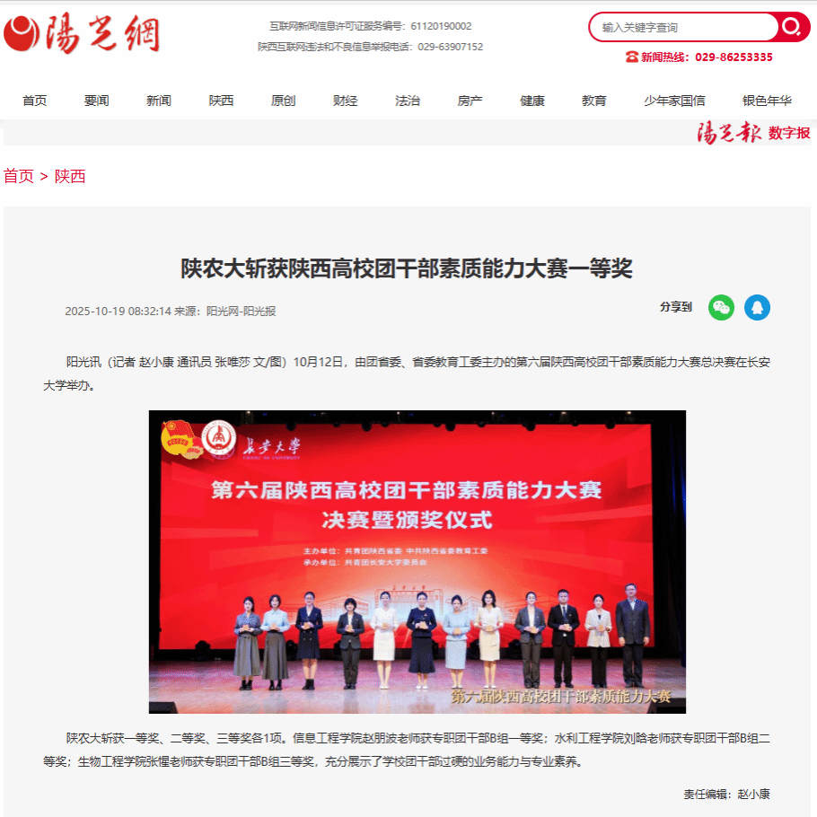 【阳光网】陕农大斩获陕西高校团干部素质能力大赛一等奖