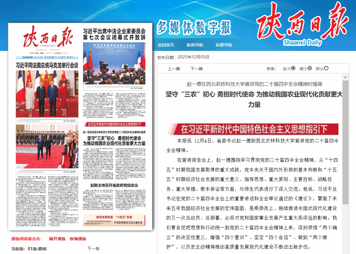 【陕西日报】赵一德在西北农林科技大学宣讲党的二十届四中全会精神