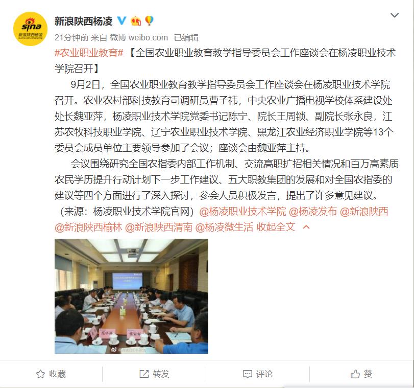 【新浪陕西杨凌】全国农业职业教育教学指导委员会工作座谈会在杨凌职业技术学院召开