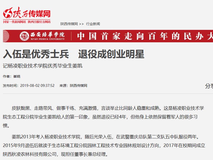 【陕西传媒网】姜凯:入伍是优秀士兵 退役成创业明星