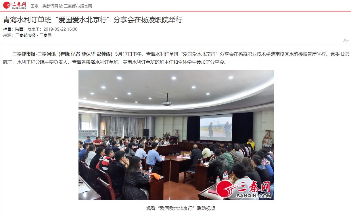 【三秦网】青海水利订单班“爱国爱水北京行”分享会在杨凌职院举行