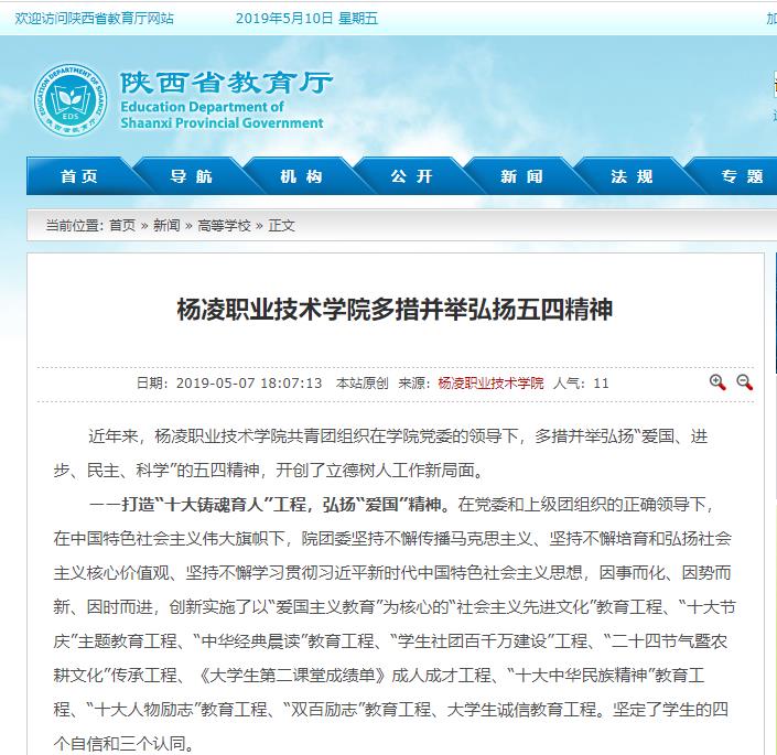 【陕西省教育厅】杨凌职业技术学院多措并举弘扬五四精神