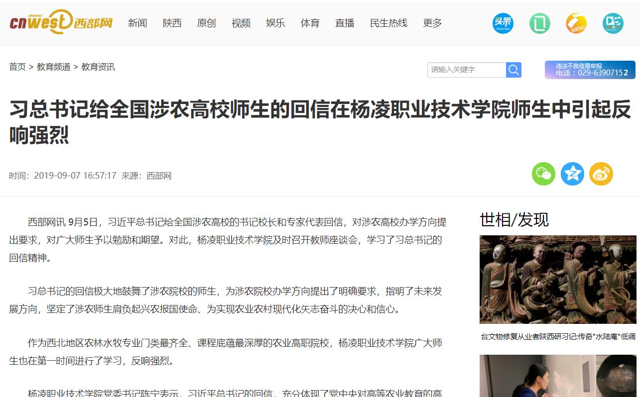 【西部网】习近平总书记给全国涉农高校师生的回信在杨凌职业技术学院师生中引起反响强烈