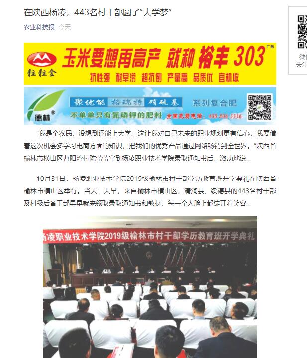 【农业科技报】在陕西杨凌,443名村干部圆了“大学梦”