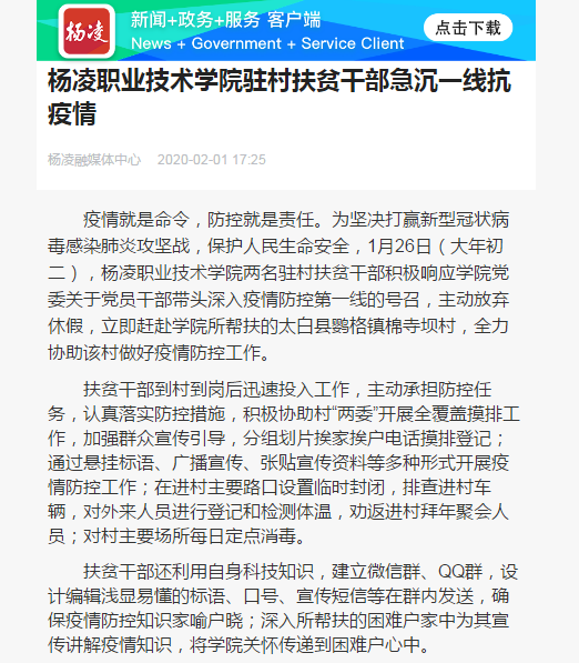 【杨凌发布】杨凌职业技术学院驻村扶贫干部急沉一线抗疫情