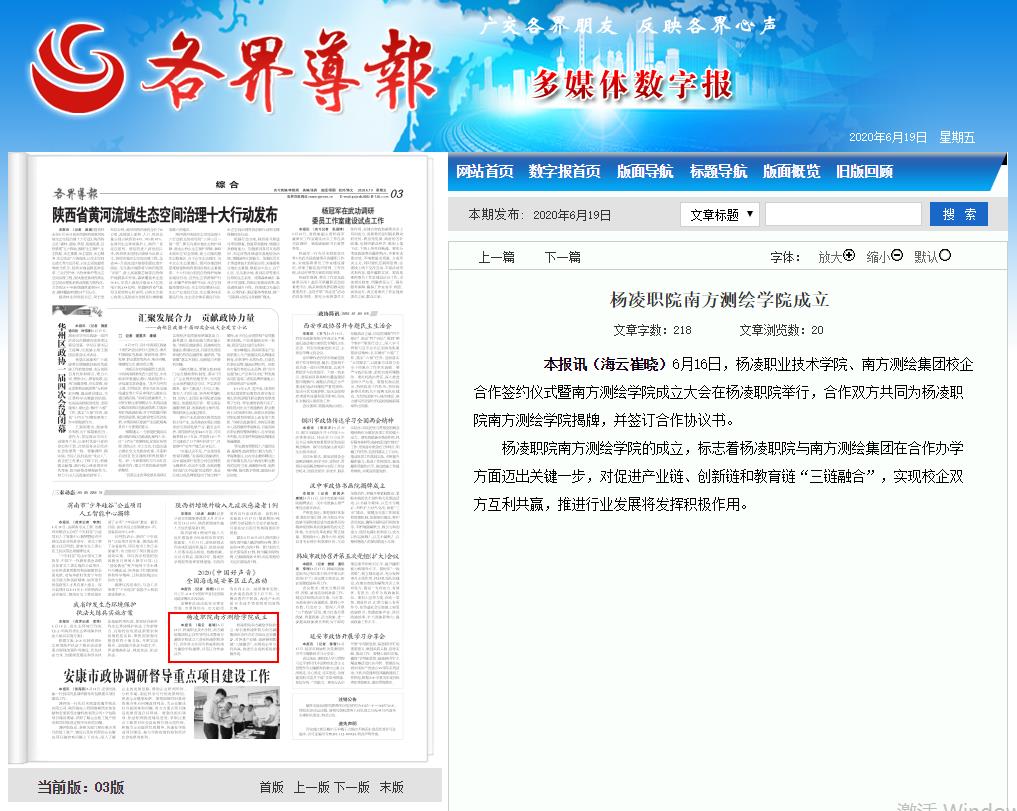 下一条:【各界新闻网】杨凌职业技术学院“南方测绘学院”成立