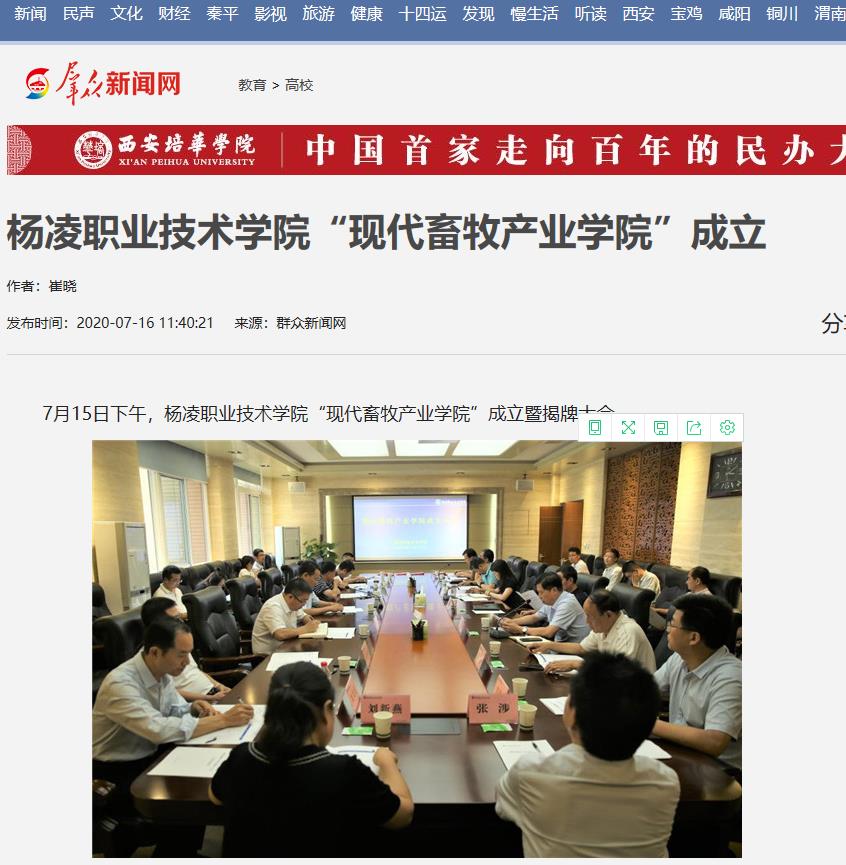 【群众新闻网】杨凌职业技术学院“现代畜牧产业学院”成立