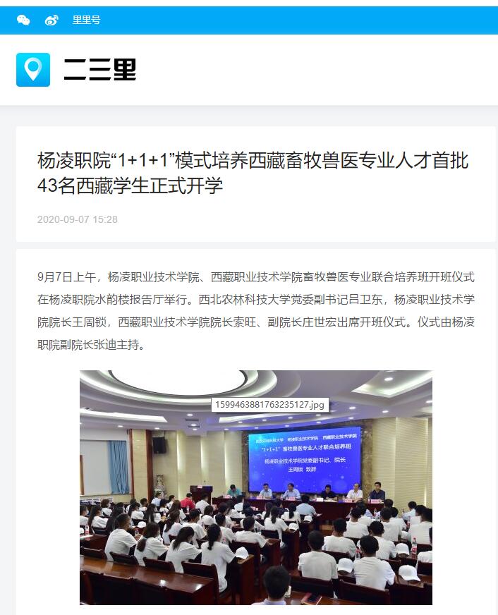 【二三里】杨凌职院“1+1+1”模式培养西藏畜牧兽医专业人才首批43名西藏学生正式开学