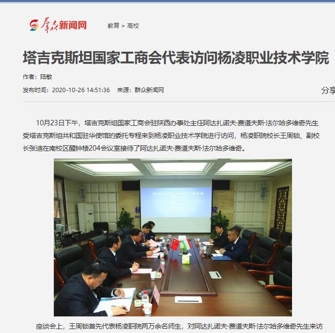 【群众新闻网】塔吉克斯坦国家工商会代表访问杨凌职业技术学院