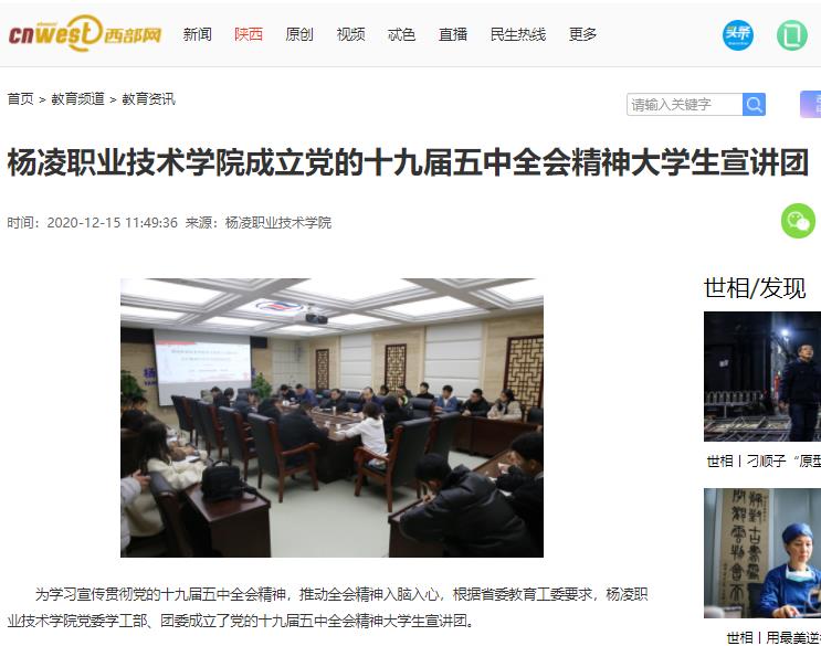 【西部网】杨凌职业技术学院成立党的十九届五中全会精神大学生宣讲团