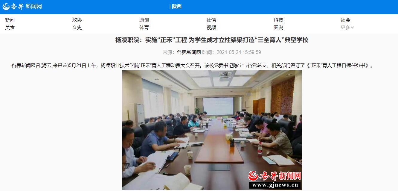 【各界新闻网】杨凌职院:实施“正禾”工程 为学生成才立柱架梁打造“三全育人”典型学校