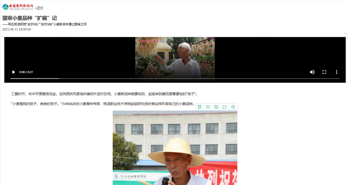 ——写在杨凌职院“武农981”“武农988”小麦新品种通过国审之际