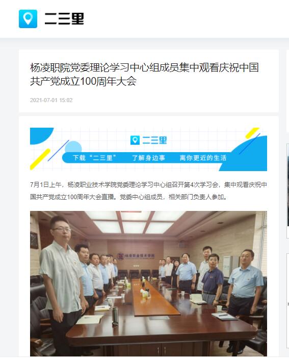 【二三里】杨凌职院党委理论学习中心组成员集中观看庆祝中国共产党成立100周年大会