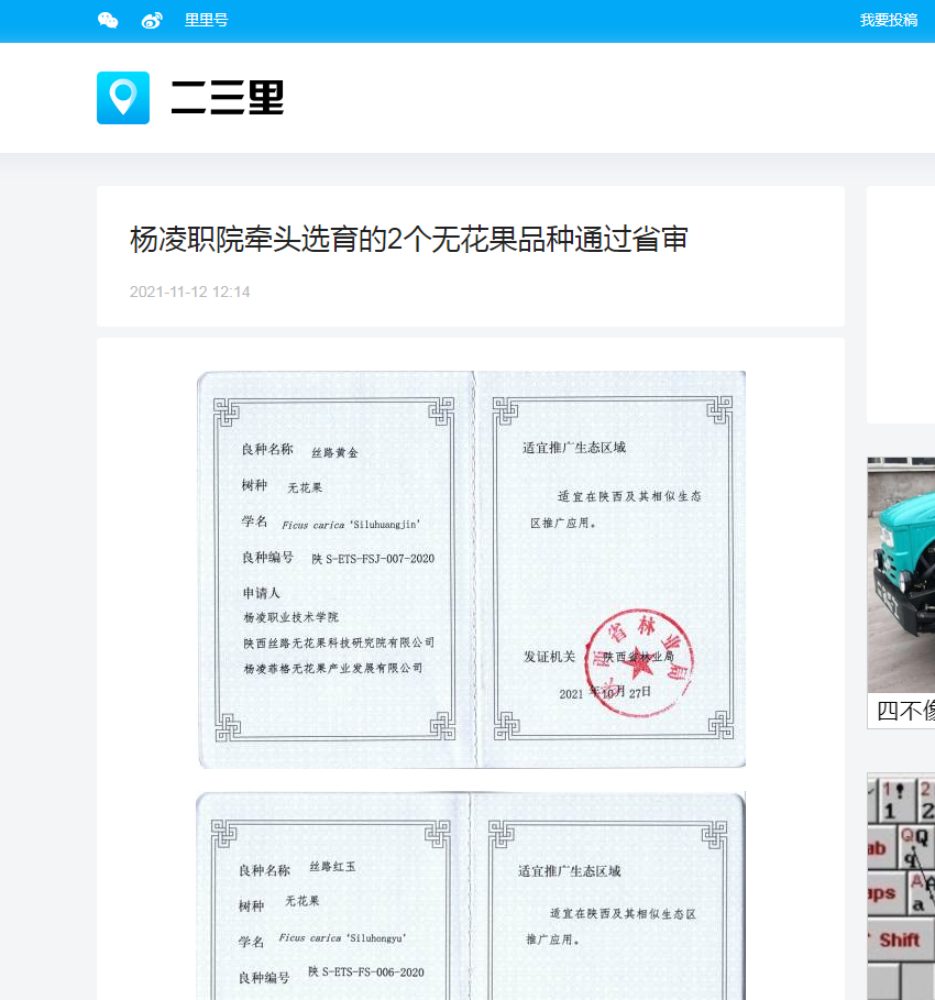 【二三里】杨凌职院牵头选育的2个无花果品种通过省审