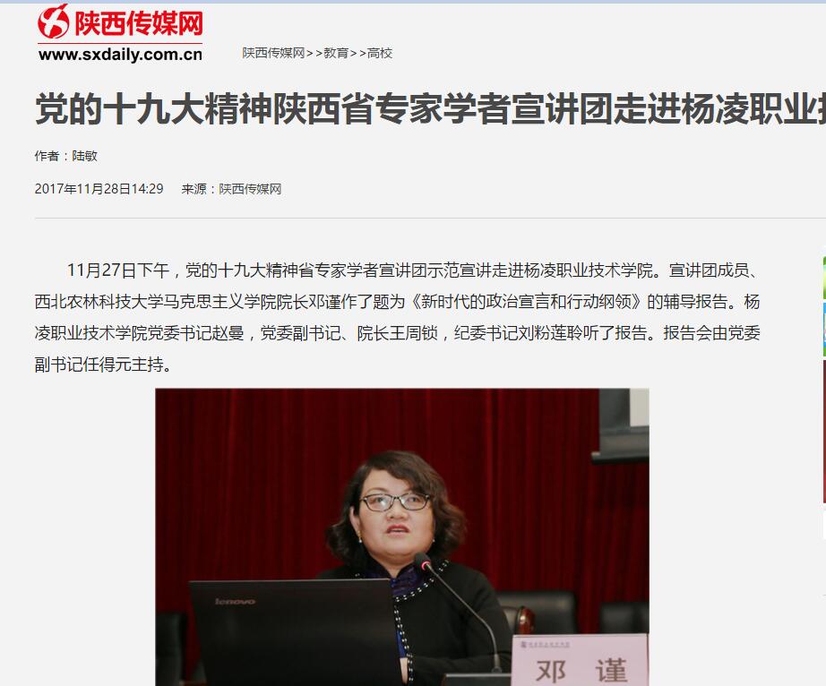 【陕西传媒网】党的十九大精神陕西省专家学者宣讲团走进杨凌职业技术学院
