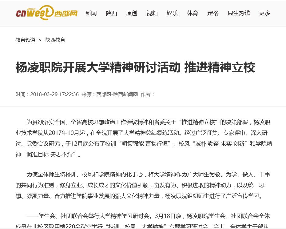 【西部网】杨凌职院开展大学精神研讨活动 推进精神立校