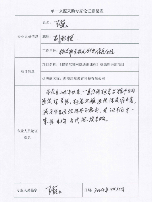 杨凌职业技术学院超星尔雅通识课采购项目,根据项目立项相关资料及专家论证意见,拟采用单一来源采购方式,该项目拟由西安超星教育科技有限公司承担。现将有关情况向潜在的供应商广泛征求意见。