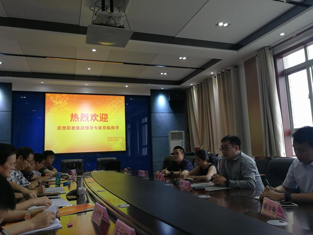 7月3日下午,联想教育集团副总裁、联想教育软件事业部总经理尹川,联想教育校企合作总监崔征等一行七人来我院考察调研。信息分院院长段智毅,总支书记高掌平带领院办主任弓有辉、学工办主任吴高潮、各教研室主任等相关人员在秦风楼四楼会议室接待了来宾,并召开了校企战略合作会议。