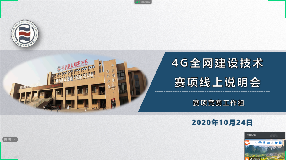 按照陕西省教育厅《关于做好2020年陕西省高等职业院校技能大赛有关工作的通知》文件精神,2020年陕西省高等职业院校技能竞赛“4G全网建设技术”赛项由杨凌职业技术学院承办。在2020年陕西省高等职业院校技能大赛组织委员会的领导下,在杨凌赛点竞赛工作办公室的筹备下,“4G全网建设技术”赛项工作组组织筹划、精心准备,组织省内本赛项各参赛院校,于2020年10月24日下午15:00分,通过腾讯会议,召开了赛项线上说明会议。