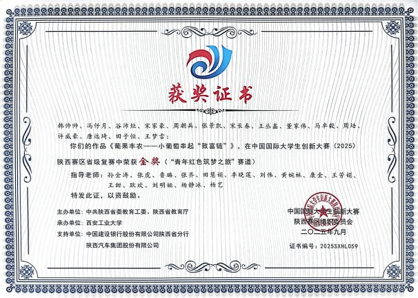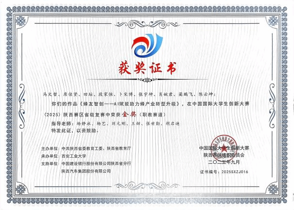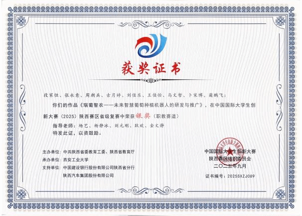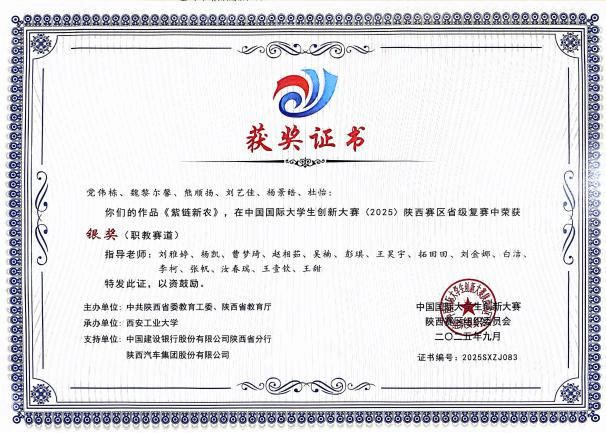 近日,陕西省教育厅正式下发《陕西省教育厅关于公布中国国际大学生创新大赛(2025)陕西赛区省级复赛结果的通知》。我院学子凭借扎实的专业素养、创新的项目设计与出色的现场表现,在本次赛事中荣获职教赛道金奖3项、银奖2项,“青年红色筑梦之旅”赛道金奖1项。获奖数量较往年有显著提升,金奖数量实现历史性突破。