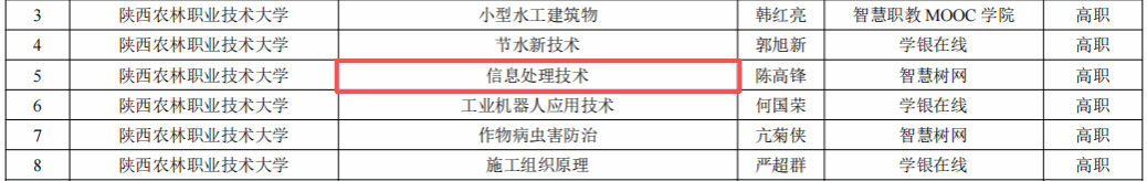 2025年11月28日,陕西省教育厅公布2025年陕西省职业教育在线精品课程认定结果,我院陈高锋教授团队牵头打造的高职类《信息处理技术》课程成功获评。